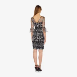 Create a high impact look at your next formal event when you choose this beautiful, beaded evening dress. For that upcoming wedding or gala, this special occasion gown features a blouson bodice, sparkling scalloped beading, and a flowing straight skirt. The back features a zipper closure and keyhole detail. Pair this beautiful sleeveless evening dress with chandelier earrings and a sleek metallic clutch for a jaw-dropping look sure to turn heads all evening.