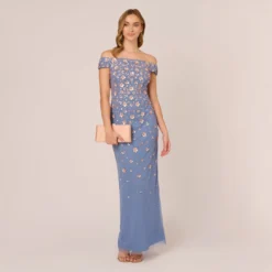 No matter the event, this mermaid gown is the main event. This formal dress features a crew neckline, long split sleeves that give a cape-like look, and crystal embellished shoulders. Crafted from crepe fabric, this dress has some stretch and no waist seam for a comfortable fiton all body types. A zipper closure at the back of the dress completes the design. Style this mermaid gown with striking metallic accessories to complete the look.