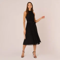 Get ready to be a style icon at all your events. Our sleeveless halter jumpsuit is crafted in a luxe stretch knit crepe and finished with a sparkling handsewn crystal-embellished waistband. The unbelievably flattering twist front design gives this wide-leg style added texture and dimension. Sleek back zip closure. Perfect for every minute of wedding season and black-tie galas.