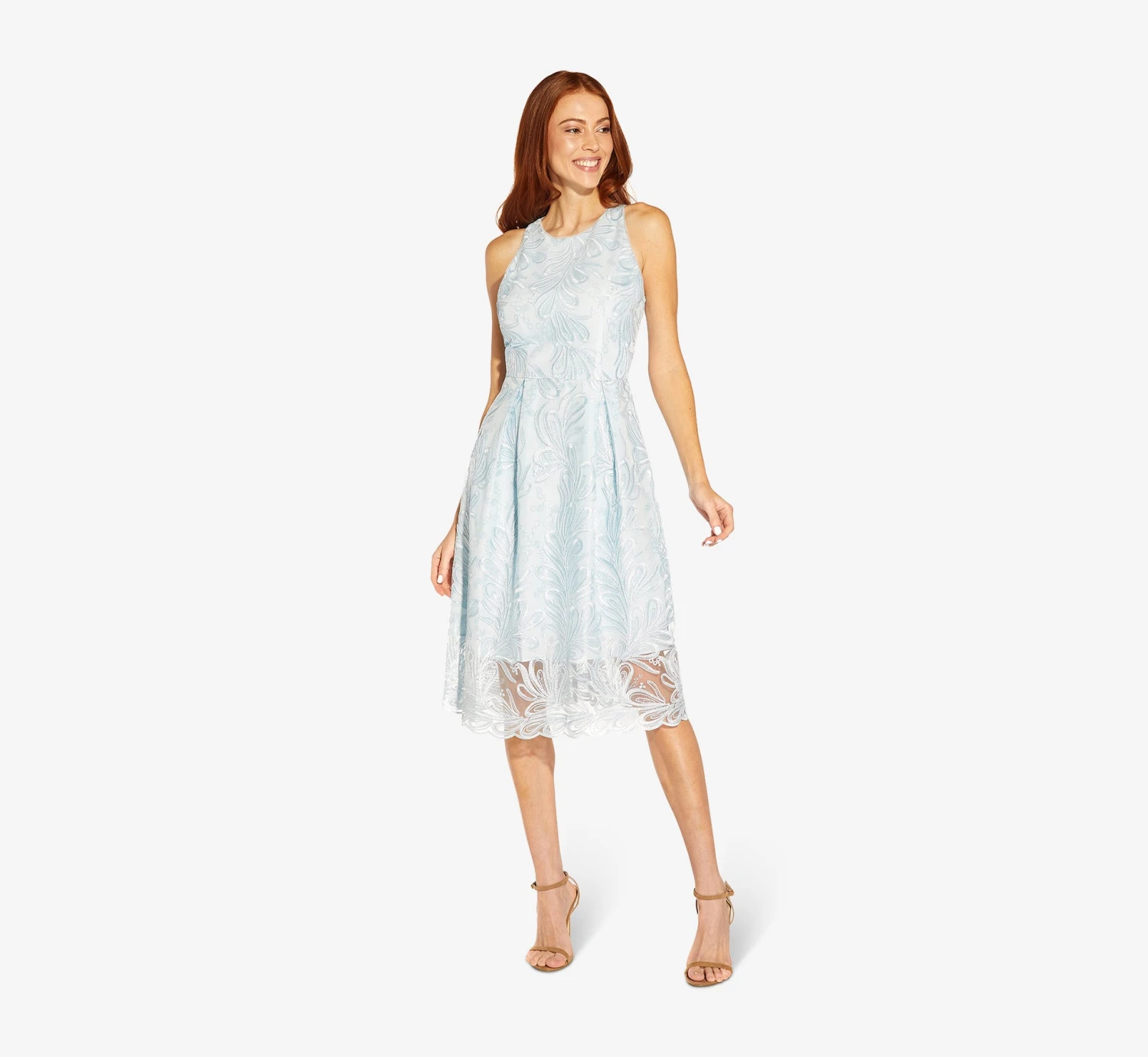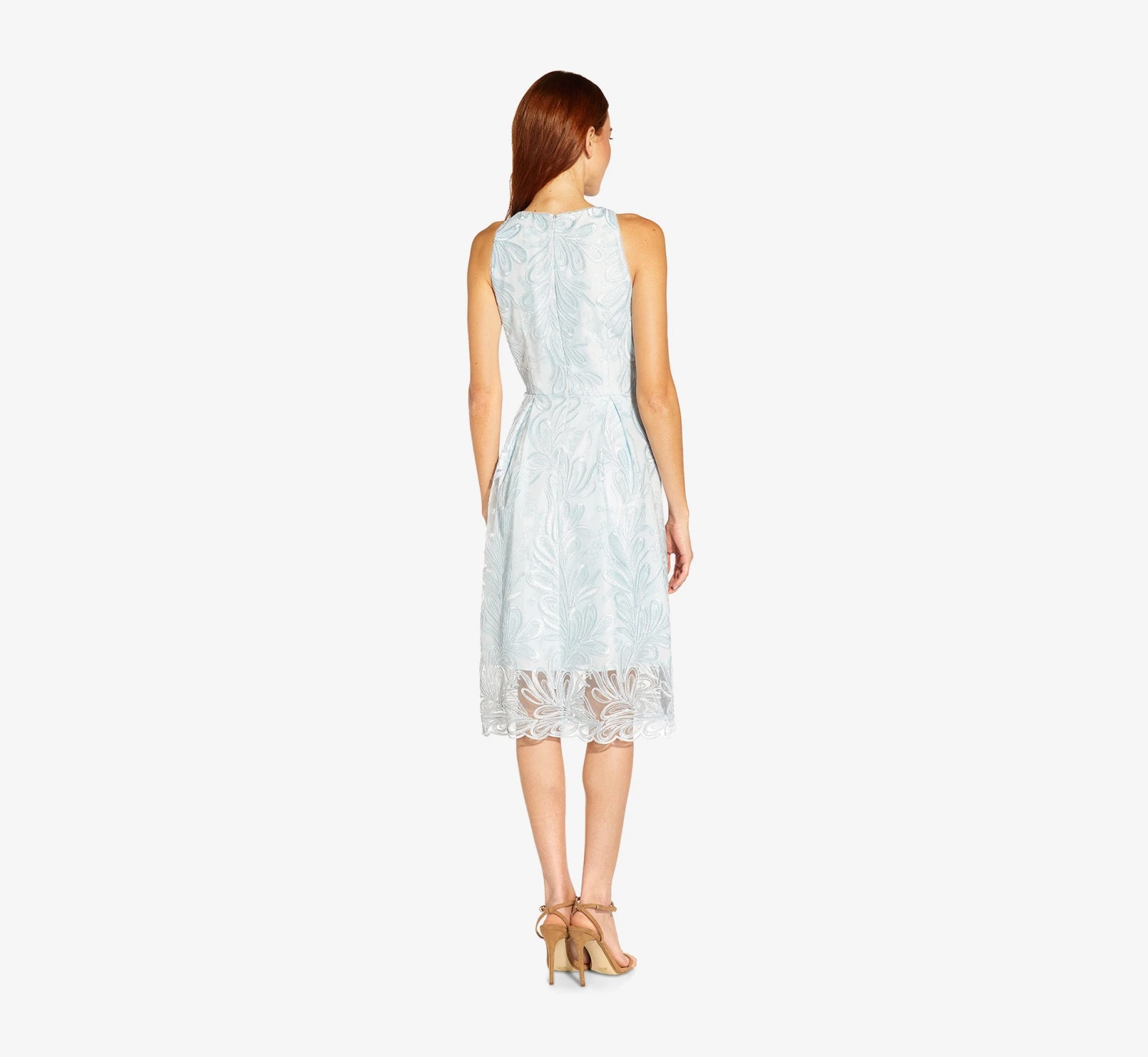 Adrianna Papell Embroidered Illusion Midi-Length Fit-And-Flare Dress In Opal