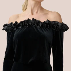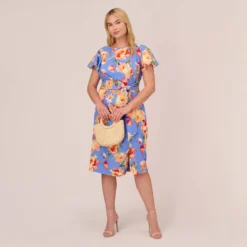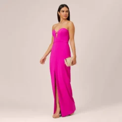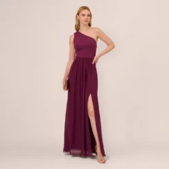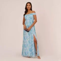 Lightweight and lighthearted, our long gown in a flowy and soft chiffon fabric features an eye-catching floral print. Designed with a wrap bodice with pleated detail that tops a long, shirred skirt with front slit for added drama. Sheer long sleeves with elastic flare cuffs. Finished with a self-tie belt to accentuate your waist.