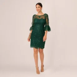Feminine and effortlessly chic, in a stretch woven chiffon fabric, our fit-and-flare dress blooms with our floral print. All the details: a v-neckline, contoured empire waist, three-quarter sleeves with tiered bell cuffs and a bias-cut short skirt. Sleek back hook-and-eye/zip closure. We love this versatile style yearround it teams with a jacket and boots or sandals to easily transtion season-to-season.