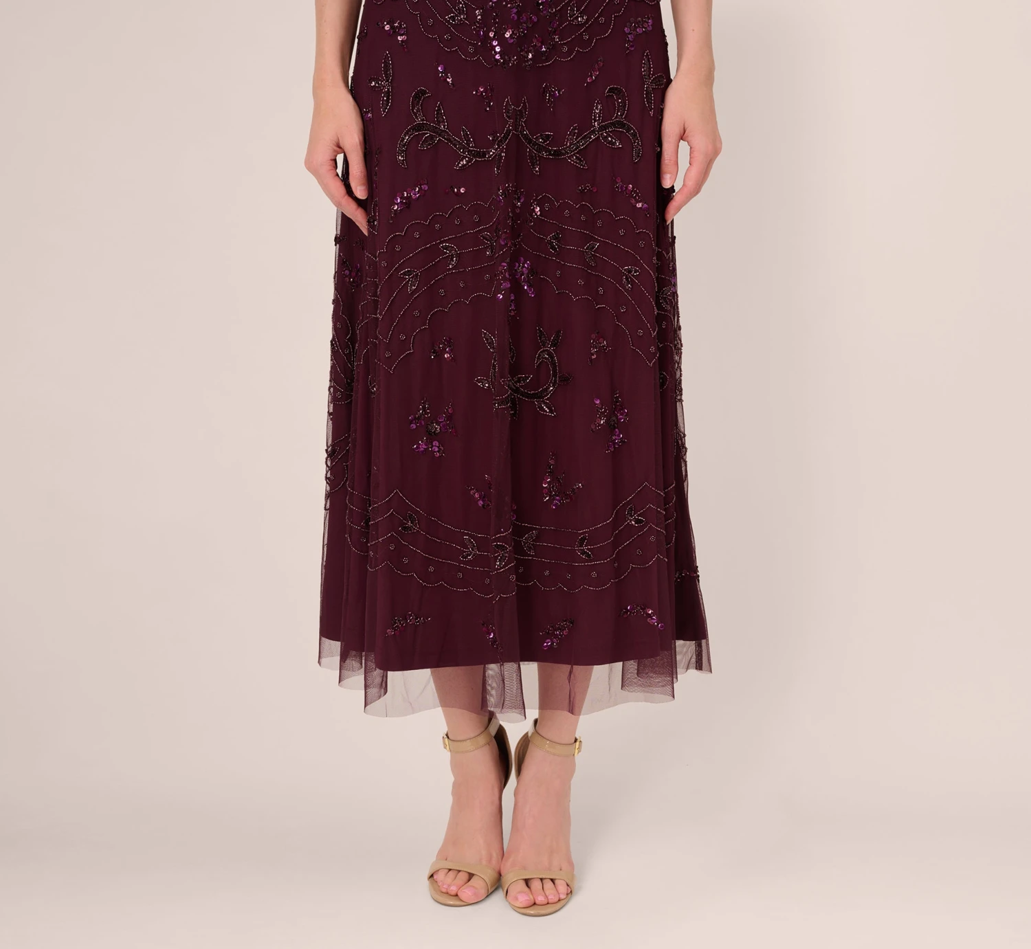 Be party ready in an instant in our effortlessly chic dress that gets treated to allover dazzling hand beadwork. Details we love: the clean v-neckline with sheer trim and the soft pleats along the skirt for added movement and sway. Wearable on repeat to all your special occasions.