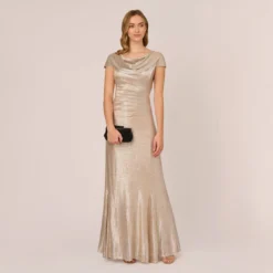 A forever favorite for all your special occasions, our striking long evening gown is designed in our iconic (and flattering) blouson silhouette. Rows of dazzling handsewn beading covers the sheer mesh overlay. All the details: bateau neckline and short sleeves. Sleek back zip closure. We love this for prom/homecoming, bridesmaids and black-tie galas.