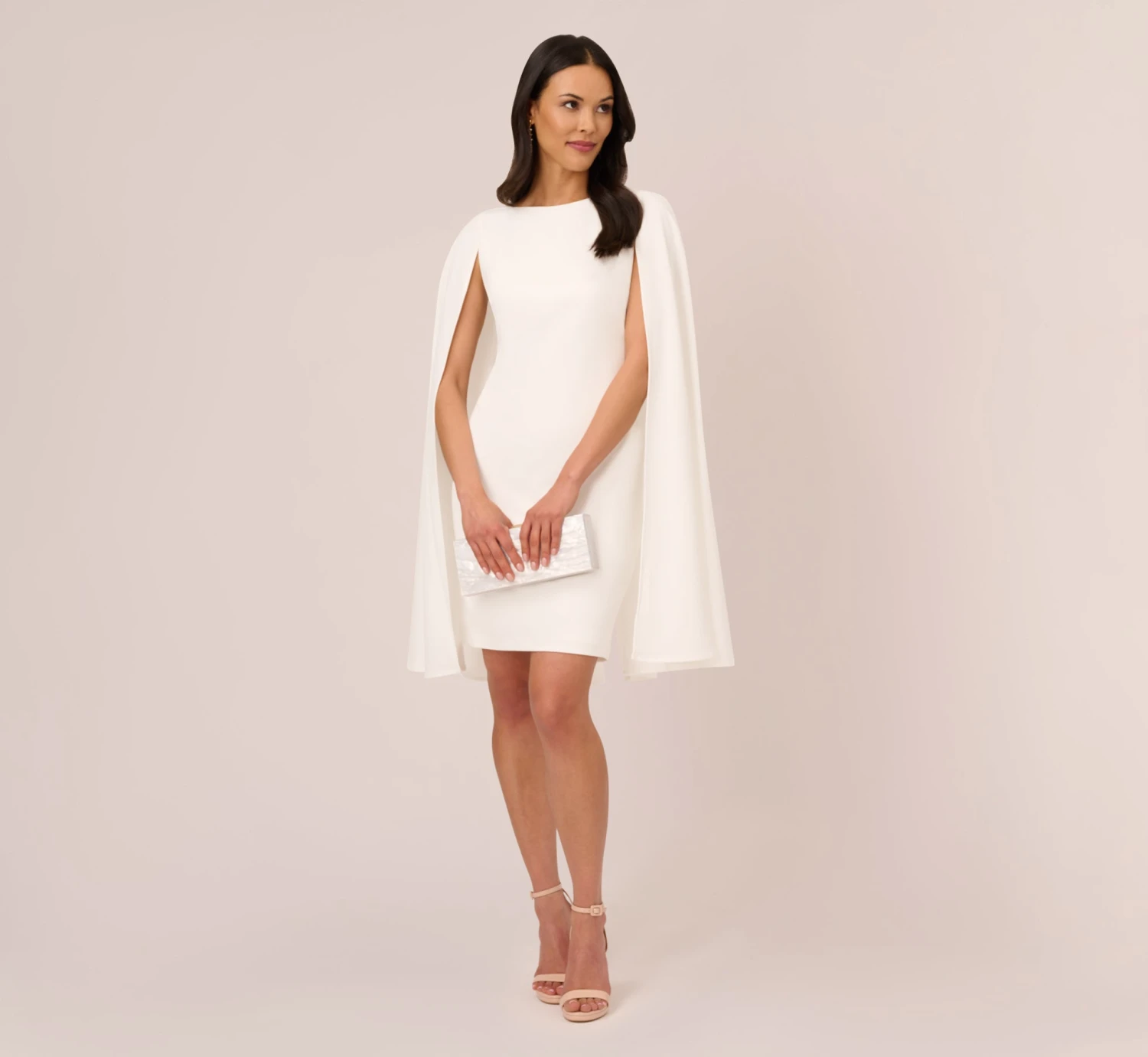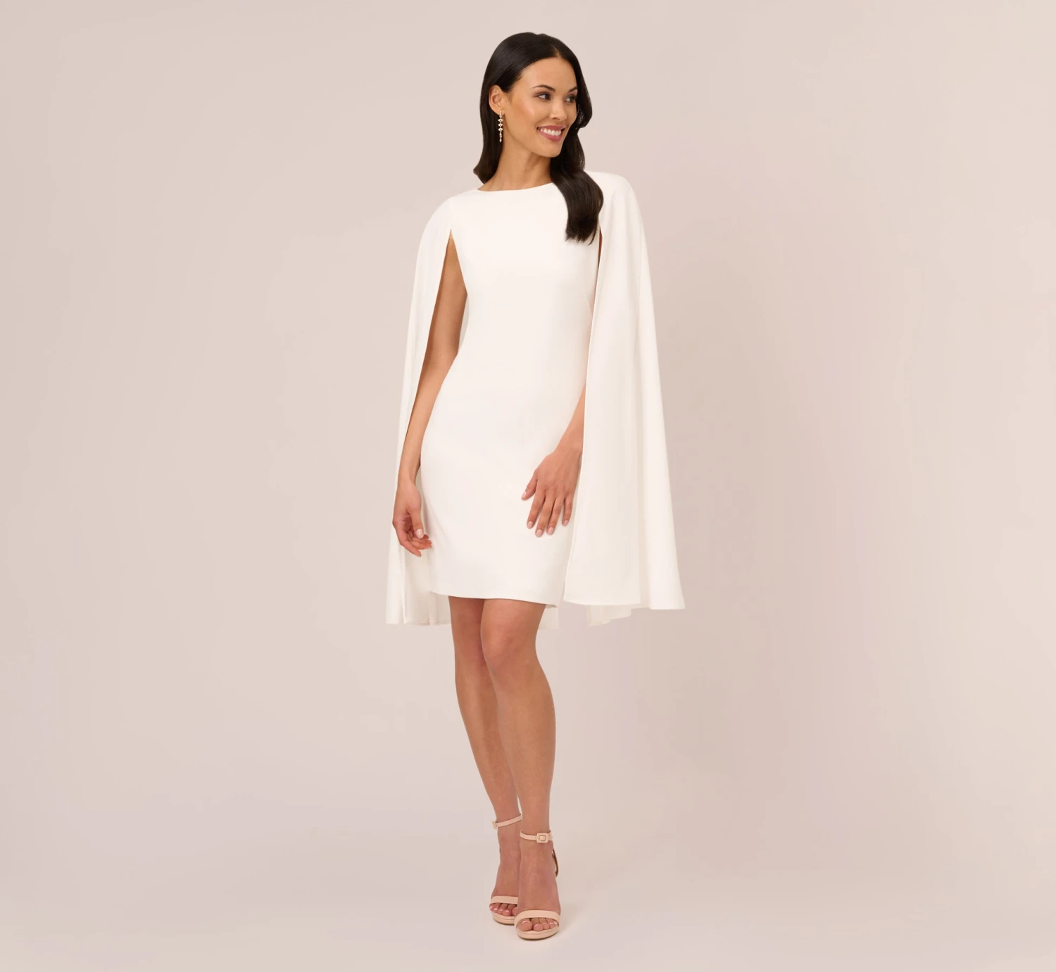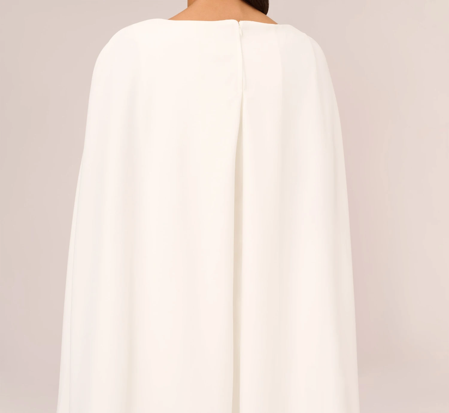 Elegant and effortlessly trendy, this cape cocktail dress will keep you looking fabulous all day and night. This chic cocktail dress features a fitted silhouette, a fashion-forward cape, and a subtle back zip closure, creating a striking look for your next party. Crafted from crepe fabric, this party dress is extremely comfortable. Pair this gorgeous cape dress with a bold, red lip and sparkling earrings for a one-of-a-kind look designed to stand out.