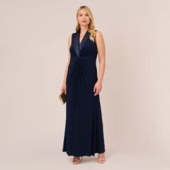 Adrianna Papell Satin Midi-Length Fit-And-Flare Cocktail Dress With Cowl Neck In Willow