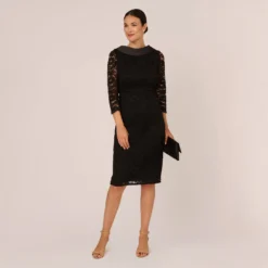 Adrianna Papell Plus Size Knit Crepe Bow Sheath Dress With Three Quarter Sleeves In Blue Mist