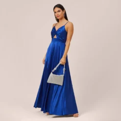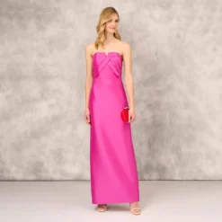 Stretch Crepe Strapless Midi-Length Sheath Cocktail Dress With Ruffle In Royal Sapphire