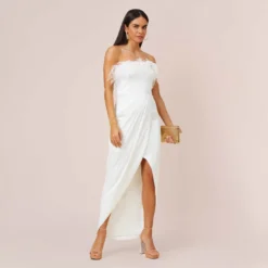 Long Sleeve Velvet Tuxedo Dress With Feather Hem In Deep Ocean