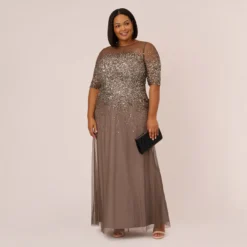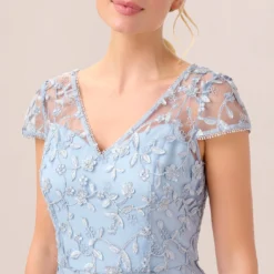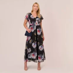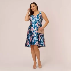 Adrianna Papell Plus Size Floral Print Mikado Short High Low Fit-And-Flare Dress In Navy Multi