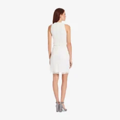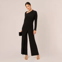 Adrianna Papell Long Sleeve Crepe Dress With Tuxedo Collar In Black