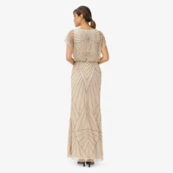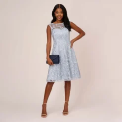 Adrianna Papell Embroidered Sleeveless Midi Cocktail Dress In Skyway