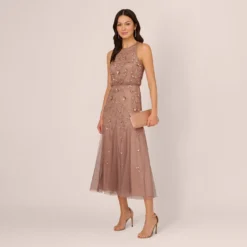 Adrianna Papell Floral Metallic Stencil Midi-Length Mermaid Dress With Capelet In Sea Glass