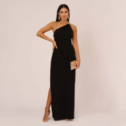 Adrianna Papell Plus Size Stretch Matte Jersey Draped Asymmetrical Short Dress In Rich Royal