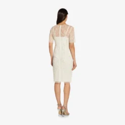 Crochet-Embroidered Midi-Length Sheath Cocktail Dress In Ivory