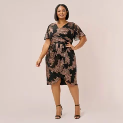 Adrianna Papell Plus Size Crepe Sheath Dress With V-Back And Feather-Trim Sleeves In Black
