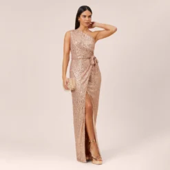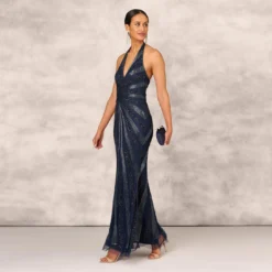 Adrianna Papell Plus Size Metallic Mesh Faux Wrap Gown With Ruffle Accents In Mint Smoke