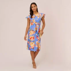 Adrianna Papell Floral-Printed Clip Dot Chiffon Midi-Length Cocktail Dress In Opal Coral Multi