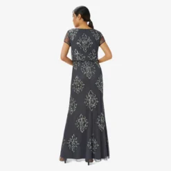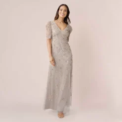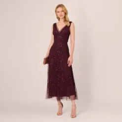 Adrianna Papell Hand-Beaded Ankle-Length Dress In Night Plum