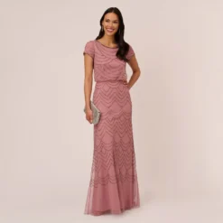 Adrianna Papell Sequin Floral Embroidered Sheath Dress With Cap Sleeves In Blue Green Multi