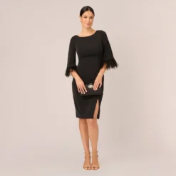 Adrianna Papell Plus Size Knit Crepe Bow Sheath Dress With Three Quarter Sleeves In Navy Sateen