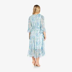 Adrianna Papell Embroidered Midi Length Sleeveless Knit Fit And Flare Dress In Blue Multi