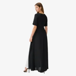 Adrianna Papell Plus Size Colorblock Matte Crepe Cropped Jumpsuit With Skirt Overlay In Black Ivory