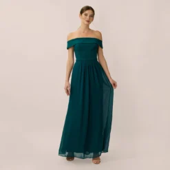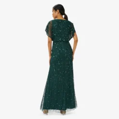 Adrianna Papell Beaded Blouson Mermaid Gown With Sheer Dolman Sleeves In Dusty Emerald