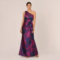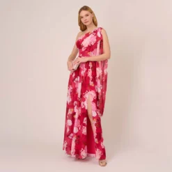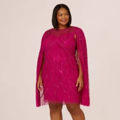 Adrianna Papell Plus Size Sequin Beaded Cape Dress With Illusion Neckline In Hot Orchid