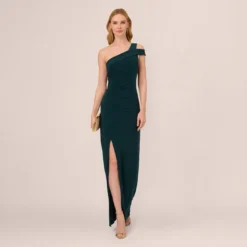 Adrianna Papell Chiffon And Jersey Flounce Draped Dress With Pleated Details In Midnight
