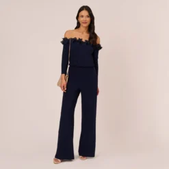 Adrianna Papell Satin Crepe Short Fit-And-Flare Dress With Tiered Bell Sleeves In Elegant Sky