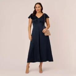 Adrianna Papell Plus Size Chiffon And Jersey Flounce Draped Dress With Pleated Details In Midnight