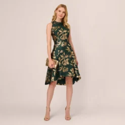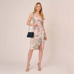 Adrianna Papell Metallic Floral Chiffon Midi Dress With Ruffled Neckline In Raspberry Multi