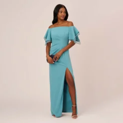 Adrianna Papell Off The Shoulder Sequin Lace Dress In Copper
