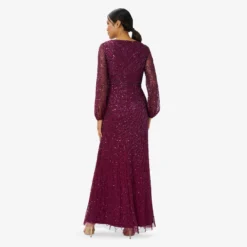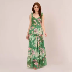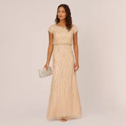 Adrianna Papell Plus Size Hand-Beaded Illusion Long Column Blouson Gown In Jungle Green