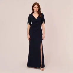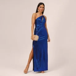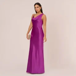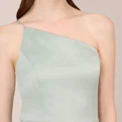 Adrianna Papell Satin Crepe One-Shoulder Long Gown In Willow