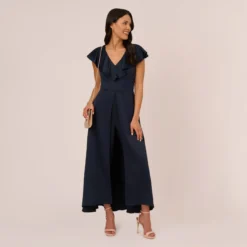 Take simple elegance to a new level when you rock this satin crepe dress. This evening gown features a sleeveless bodice with a v-neckline, bow accent at the waist, and a column skirt with thigh-high slit. Designed with crepe back satin that has subtle shine and no stretch, this formaldress has elegant stitch-and-release pleats through the bodice. A zipper closure at the back completes this column gown. Accessorized with nude heels and a beaded clutch, this satin crepe gown will shine from formal attire events to black-tie affairs.